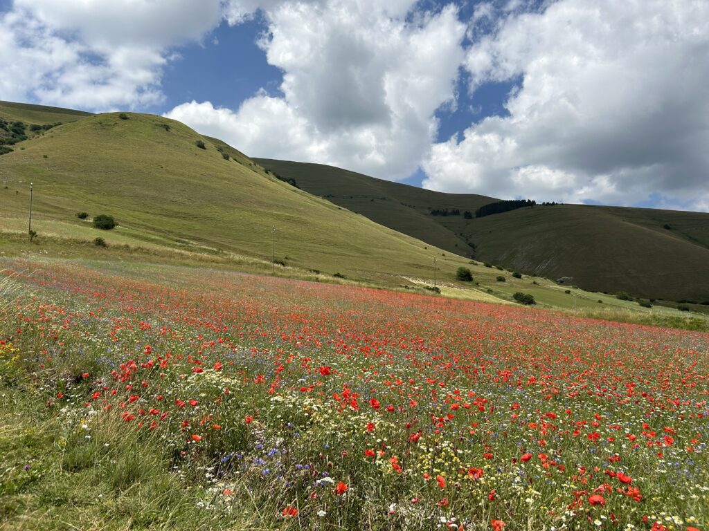 Sono arrivata dal mare, precisamente da Civitanova Marche, incrociando distese di girasoli che mi hanno dato il benvenuto. Ho deciso di pranzare ai Piani di Ragnolo, dopo una piacevole passeggiata tra prati e fiori,